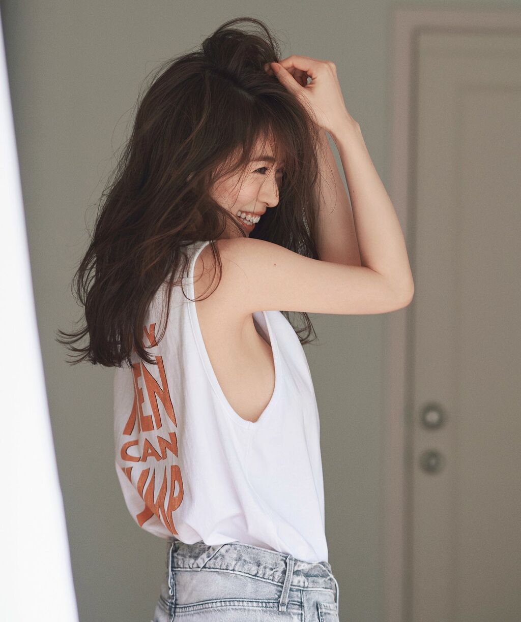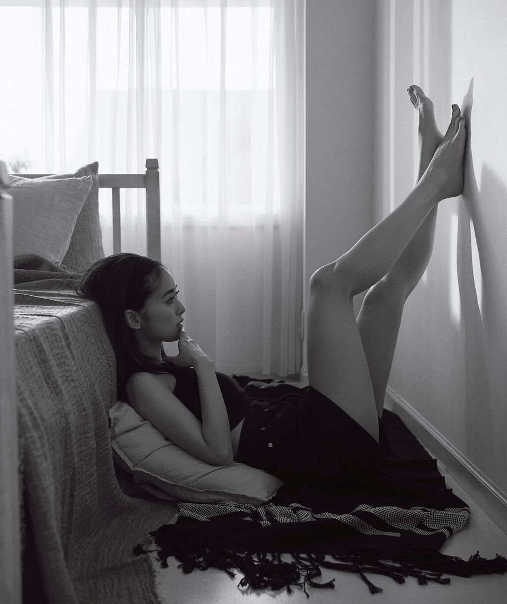 「20 代のころの写真を見返して思ったのは、今のカラダのほうが好きということ。昔のほうがストイックだったけど、今のほうがずっとスリム。(20 代のころは)周りと比べて、『こうなりたい!』という気持ちが強すぎて、しんどかった。今でも、自分の脚とか全然好きじゃないんです。でも、30 代になってこれが私のカラダだよ、と受け入れて愛せるようになりました」
