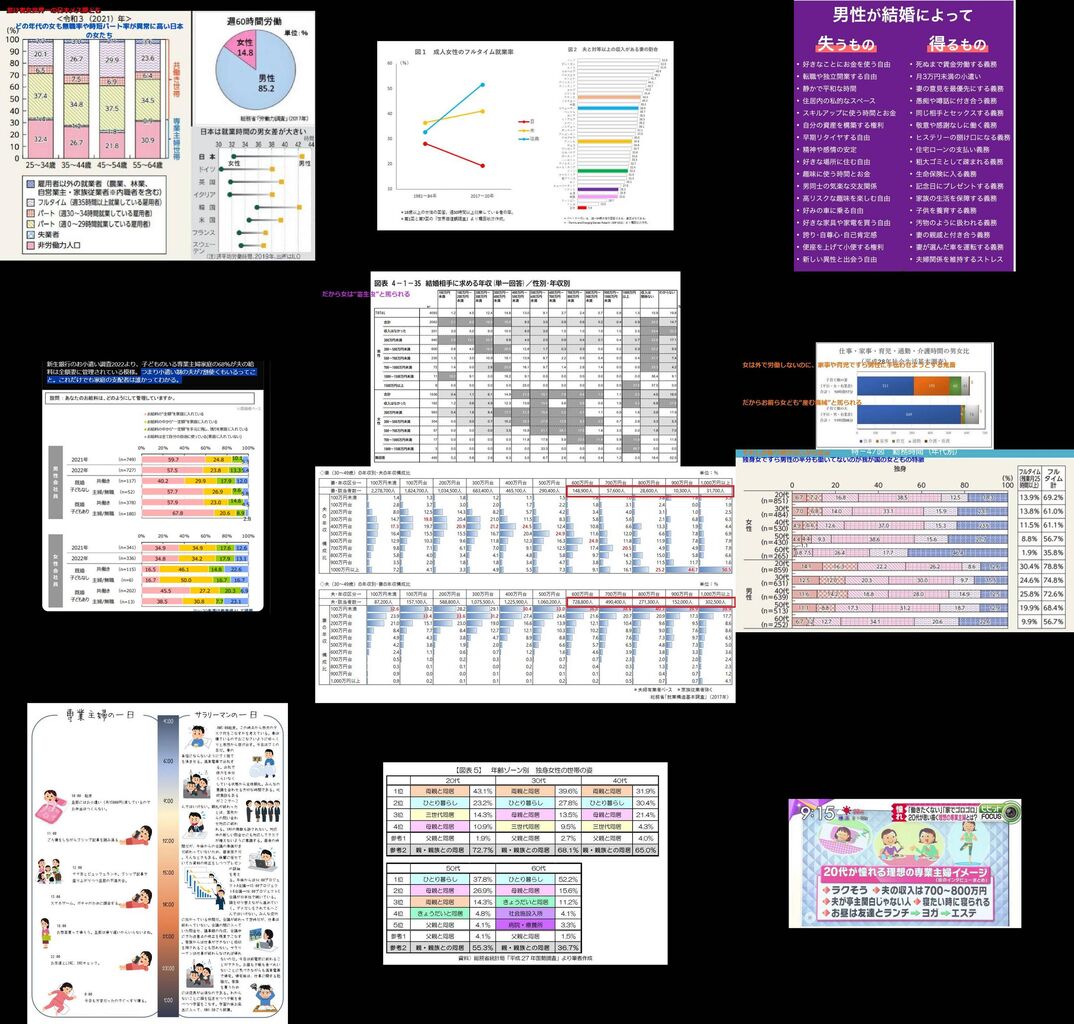 日本は独身女、既婚女ともに無職率、時短パート率世界トップクラスに多いという証拠画像である。