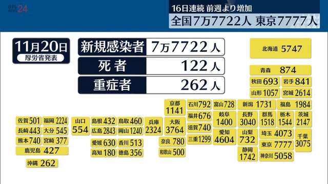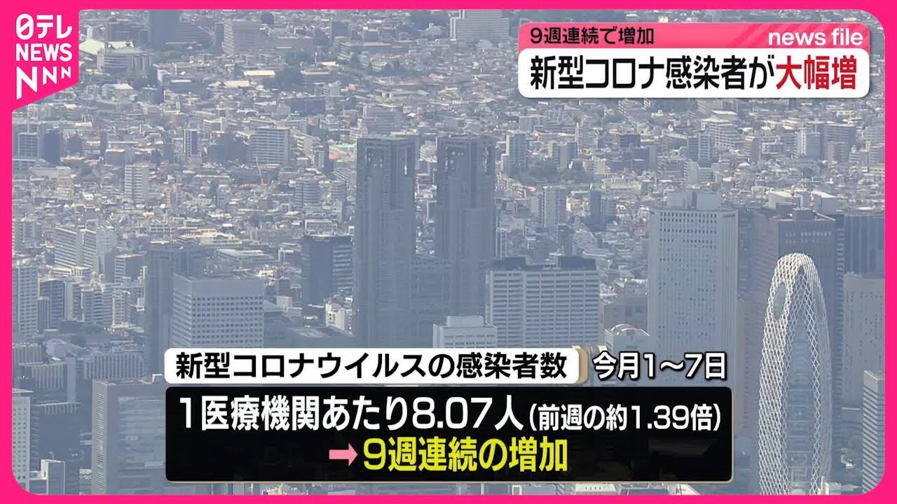 厚生労働省によりますと、1日から7日までの1週間に全国の定点医療機関から報告された新型コロナウイルスの感染者数は、1医療機関あたり8.07人で、前の週のおよそ1.39倍と大きく増加しました。