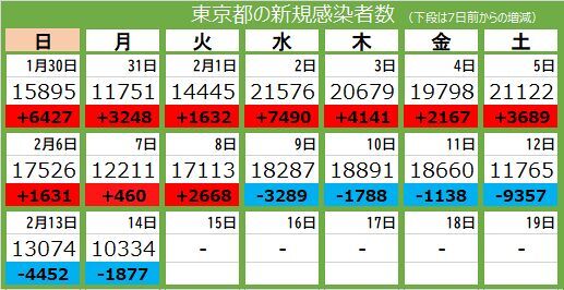 14日、東京都が確認した新型コロナウイルスの新たな感染者は1万334人だった。