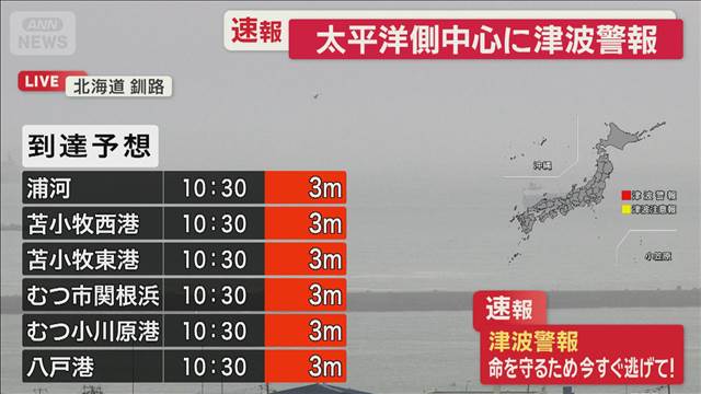 同庁によると、海外の火山噴火によって国内で潮位の変化が観測されたのは初めてだという。津波警報が出されたのは、2016年11月の福島県沖を震源とする地震以来。(吉沢英将)